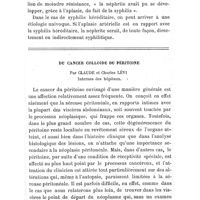 0151 - Page 151 - Mémoires originaux. D'un cas de néphrite syphilitique héréditaire tardive. Par M. Léopold Lévi... / Du cancer colloide du péritoine. Par Claude et Charles Lévi..