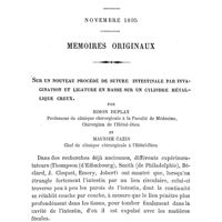 0515 - Page 515 - Mémoires originaux. Sur un nouveau procédé de suture intestinale par invagination et ligature en masse sur un cylindre métallique creux. Par Simon Duplay... et Maurice Cazin..