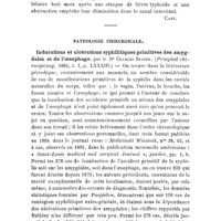 0627 - Page 627 - Revue générale. Pathologie chirurgicale. Indurations et ulcérations syphilitques primitives des amygdales et de l'oesophage, par le Dr Charles Szadek. (Przeglad chirurgiczny, 1894, t. I, p. LXXXIII.) / Bulletin. Sociétés savantes. Académie de médecine