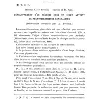 0106 - Page 102 - Recueil de faits. [C. T. 1]. Hôpital Saint-Antoine. — Service de M. Blum. Développement d'un sarcome chez un sujet atteint de neurofibromatose généralisée (Observation recueillie par M. Feindel.)
