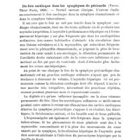 0119 - Page 115 - Revue analytique. Du foie cardiaque dans les symphyses du péricarde (Venot, Thèse Pais, 1896). / Altérations du foie après ligature de l'artère hépatique (Janson, Zieglers Beitraege. T. XVII, p. 505). / Le rôle de l'alcool et des maladies aiguës infectieuses dans l'étiologie de l'hépatite interstitielle, par Scagliosi (Archiv f. path. Anatomie de Virchow, 17 septembre 1896)