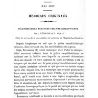 0517 - Page 513 - Mémoires originaux. Télangiectasies multiples chez une Basedowienne. Par A. Létienne et E. Arnal. (Note du service de la consultation de médecine de l'hôpital Lariboisière)