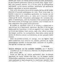 0649 - Page 630 - Bibliographie. Cliniques chirurgicales de l'Hôtel-Dieu, par Simon Duplay... Recueillies et publiées par les Drs M. Cazin..., et S. Clado..., Paris, Masson et Cie, 1897 / Leçons de clinique médicale. Psychoses et affections nerveuses. — Par le Dr Gilbert Ballet... — Paris O. Doin, 1897