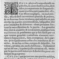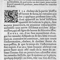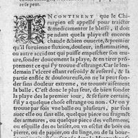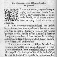 0034 - Page sans numérotation - Chapitre II. Curation des playes d'harquebouses en general