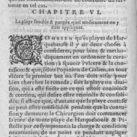 0050 - Page sans numérotation - Chapitre VI. La playe fondée & purgée, quel medicament on y doit appliquer