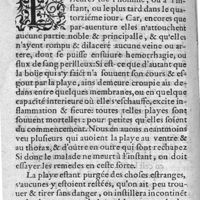 0038 - Page sans numérotation - Chapitre III. Division des playes faictes par la balle des harcquebouses, pistolles, & autres bastons à feu, & comme on les peut discerner d'avec les autres