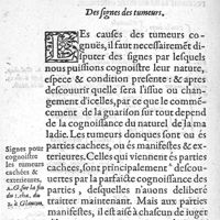 0022 - Page sans numérotation - De la matiere des tumeurs. Des causes efficientes des tumeurs