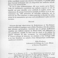 0231 - Page 208 - Séances des 9 mars et 13 avril 1960. Mémoires. Rickettsioses et néorickettsioses en Haute-Volta. Intérêt de la microagglutination des rickettsies sur lame en zone intertropicale, par Claude Chastel et Jean Ridet. Conclusions. / Résumé. (Bobo-Dioulasso. Laboratoire de Biologie du Centre Muraz et Services Hospitaliers.). / Bibliographie