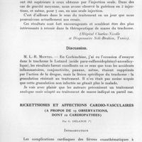 0264 - Page 239 - Séances des 9 mars et 13 avril 1960. Mémoires. Rickettsioses et affections cardio-vasculaires (A propos de 13 observations, dont 12 cardiopathies) par G. Delanoe. Résumé. (Service de Cardiologie du Centre hospitalier Averroes, Casablanca.). / Bibliographie