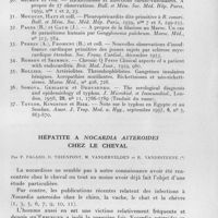 0266 - Page 241 - Séances des 9 mars et 13 avril 1960. Mémoires. Rickettsioses et affections cardio-vasculaires (A propos de 13 observations, dont 12 cardiopathies) par G. Delanoe. Bibliographie. / Hépatite à Nocardia asteroides chez le cheval, par P. Fagard, D. Thienpont, M. Vandervelden et R. Vandesteene