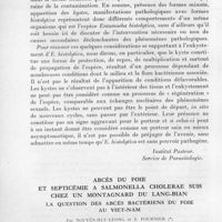 0855 - Page 781 - Séances des 12 octobre et 9 novembre 1960. Communications. Isolement des salmonelles à partir de ganglions mésentériques humains, par R. J. Baylet, M. Armengaud et J. Kerrest avec la collaboration technique de Mlle N. Pinhede. (Institut Pasteur de Dakar. Directeur : M. le Docteur Kirsche.). / Enquête sérologique sur l'incidence de la poliomyélite chez les singes sauvages de la république du Congo, par R. Depoux et J. Chambron (avec la collaboration technique de Mlle Baldasar)