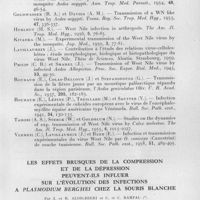 0036 - Page 28 - Séances des 13 janvier et 10 février 1960. Communications. La réaction de fixation du complément peut être un élément de diagnostic important en cas de décès précoce au cours d'une fièvre jaune, par René Panthier et Claude Hannoun. (Service de la fièvre jaune, Institut Pasteur.). / Deuxième note concernant un cas exceptionnel de trypanosomiase. Parasitémie observée depuis 21 ans sans signes cliniques appréciables chez une malade traitée inefficacement pendant les dix premières années, par L. Lapeyssonnie