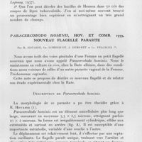 1024 - Page 929 - Séance du 14 décembre 1960. Communications. Un cas de péricardite grippale à virus sing. A, par G. Delanoe. / Présentation d'un parasite découvert dans un frottis de ponction ganglionnaire, par P. Ravisse