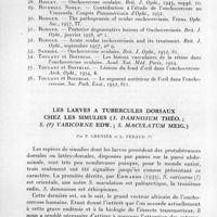 0799 - Page 727 - Séance du 6 juillet 1960. Mémoires. Biologie et élevage d'Ornithodoros capensis neumann (acarien argasidae), par Jacques Colas-Belcour et Jean Rageau. / Simulies (dipt., simuliidae) de Tahiti. Remarques sur la classification des simuliidae, par P. Grenier et J. Rageau