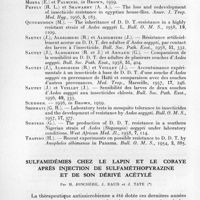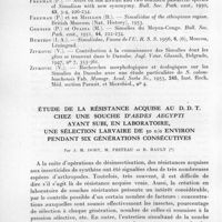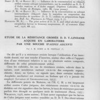 0178 - Page 152 - Séances des 9 mars et 13 avril 1960. Communications. Anophélisme sans paludisme au Nord Tchad, par J. Saugrain et R. Taufflieb. (Service antipaludique d'Afrique Équatoriale. Office de la recherche scientifique Outre-mer.). / Sensibilité au D. D. T. des adultes provenant du croisement d'une souche d'Aedes aegypti sensible avec une souche d'Aedes aegypti résistante, par J. Sautet, J. Aldighieri et R. Aldighieri