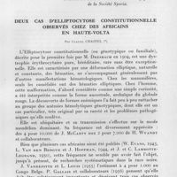 1174 - Page 1065 - Sociétés correspondantes. Société médicale d'Afrique noire de langue française. Séance du 7 novembre 1960. A propos d'un rupture utérine du travail chez une ancienne césarisée, par R. Le Cannelier, P. Bourgoin et P. Vanier Leclère. / A propos d'un cas d'ectasie bilatérale de la veine fémorale commune, par H. M. L. Sohier, J. Laffont et R. Fustec. / Spasmes en flexion et ancéphalopathies convulsivantes de la première enfance. Effets de l'A. C. T. H. (A propos de 5 observations), par H. Collomb, P. Dubois, G. Vanier et J. Martin