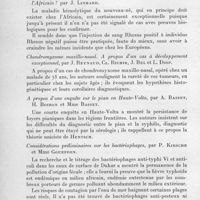 0155 - Page 135 - Séances des 9 mars et 13 avril 1960. Communications. Un nouveau sérotype de Salmonella : S. Ruki 1, 4, 5, 12 : y : e, n, x, par P. Vassiliadis, L. Le Minor et J. Doners. (Institut de médecine Tropicale « Princesse Astrid » Léopoldville, Institut Pasteur Paris et laboratoire médical provincial Coquilhatville.). / Pneumopathies et néorickettsioses, par J. Jadin, P. Giroud et H. Peene