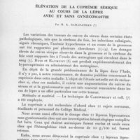 1175 - Page 1066 - Sociétés correspondantes. Société médicale d'Afrique noire de langue française. Séance du 7 novembre 1960. Spasmes en flexion et ancéphalopathies convulsivantes de la première enfance. Effets de l'A. C. T. H. (A propos de 5 observations), par H. Collomb, P. Dubois, G. Vanier et J. Martin. / Mucocèle fronto-orbitaire dénudant la dure-mère (Traitement chirurgica et données pathogéniques), par J. Reynaud, M. Aouchiche et C. Quénum. / Traitement des formes de début de la lèpre par le 7522 R. P. (Sultirène). Premiers résultats, par A. Basset, R. Camain, Mme Basset et A. M. Sow. / Artérite du tronc basilaire au cours de méningo-encéphalite syphilitique, par H. Collomb, G. Vanier et M. Dumas