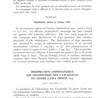 0254 - Page 236 - Séances des 14 mars et 11 avril 1962. Communications. Lutte contre l'hydatidose en Corse. Campagne 1961, par P. Lenck. / Prospection coprologique des helminthes des Camaelidae du genre Lama Frisch 1775, par F. Quevedo
