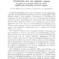 0279 - Page 261 - Séances des 14 mars et 11 avril 1962. Mémoires. Recherches sur les vibrions marins. A propos de 44 souches isolées de moules (Mytilus gallo provincialis) du littoral algérois. Par Jean Brisou, Camille Tysset, M. Mailloux et S. Espinasse. Genre Vibrio Muller, 1773