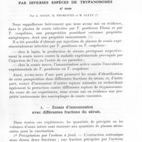 0138 - Page 128 - Séances des 10 janvier et 14 février 1962. Mémoires. Enquête sérologique préliminaire sur l'incidence des tréponématoses au Congo (Brazzaville), par J. Nicoli, J. C. Gilles, J. Boilait, C. Folie-Desjardins et J. Demarchi. / Mise en évidence d'un antigène vaccinant dans le plasma de souris expérimentalement infectées par Trypanosoma gambiense et par Trypanosoma congolense, par A. Dodin et H. Fromentin