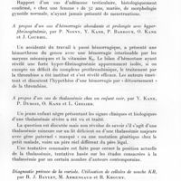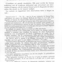 0191 - Page 181 - Sociétés correspondantes. Société médicale d'Afrique noire de langue française. Séance du 5 février 1962. Communications. Commentaires sur la thérapeutique et l'évolution favorable d'un coma hépatique après splénectomie, par Mme G. Sérafino, R. Fustec et Menye. / A propos des insuffisances rénales post-opératoires, par Mme G. Sérafino et H. Tossou. / Sur un cas de fibromyxome dysembryoplasique dans la cloison recto-vaginale, par X. Sérafino, Cl. Richir, I. Pouyé et C. Quenum. / Hypertension artérielle avec rein atrophique chez une fillette de 8 ans. Néphrectomie : évolution favorable actuelle, par X. Sérafino, J. Sénécal, P. Pineau et H. Tossou