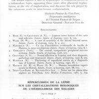 1103 - Page 1024 - Séances des 14 novembre et 12 décembre 1962. Mémoires. Formes escarrotiques d'Erythema nodosum leprosum et leurs relations avec le phénomène de Lucio, par P. Harter et Mlle Trinh-Thi-Kim-Mong-Don. Références bibliographiques. / Discussion