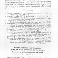 0251 - Page 233 - Séances des 14 mars et 11 avril 1962. Communications. Lutte contre l'hydatidose en Corse. Campagne 1961, par P. Lenck