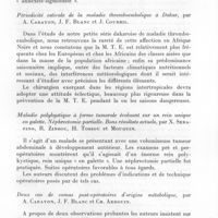 1006 - Page 939 - Société médicale d'Afrique noire de langue française. Séance du 18 juin 1962. Résumés. Dislocation atloïdo-axoïdienne au cours d'une maladie de Kahler. Laminectomie décompressive et arthrose mixte, par B. Courson, H. Ayats, A. Cayret, R. Fustec et P. Mattern. / Quelques cas de grenouillettes sus-hyoïdiennes, par J. Reynaud, L. Diop et M. Guérin. / Ascaridiose mortelle. Pancréatite nécrotico-hémorragique, par C. Quénum et Cl. Richir