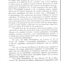 1003 - Page 936 - Société médicale d'Afrique noire de langue française. Séance du 4 juin 1962. Communications. Les transaminases dans le diagnostic des hépatites virales, par R. Baylet, P. Deniel, R. Camain et Ch. Ardouin. / Tests sérologiques pour le diagnostic de l'hépatite épidémique, par R. Baylet, Ch. Ardouin, M. Moulanier (avec la collaboration de Mlles Sorano et Oudart). / Résultat d'une étude sur les angines observées dans la région dakaroise. A propos de 107 observations (comparaison avec 46 sujets témoins), par M. Armengaud, L. Chambon, R. J. Baylet, M. Louvain et I. Diop Mar. / Étude systématique des lésions athéromateuses cérébrales chez l'Africain, par Cl. Richir et C. Quénum