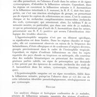 1187 - Page 1106 - Séances des 14 novembre et 12 décembre 1962. Mémoires. Confrontation entre les réactions immunologiques et les manifestations Cliniques, cystoscopiques, parasitologiques et hématologiques chez 31 malades atteints de bilharziose urinaire, par R. Deschiens, A. Toudoire et J. Bénex. Corollaires diagnostiques. / Résumé
