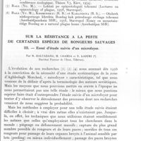 1267 - Page 1194 - Séance du 11 décembre 1963. Séance spéciale consacrée à la mémoire de Georges Blanc. Étude de l'épidémiologie de la peste dans le Kurdistan iranien. Sur la résistance à la peste de certaines espèces de rongeurs sauvages. IV. - Nature de la résistance. Par M. Baltazard, M. Eftekhari, M. Chamsa, Y. Karimi et P. Mostachfi (Institut Pasteur de l'Iran, Téhéran)