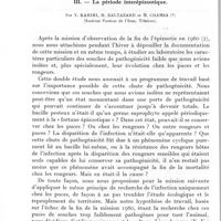 1192 - Page 1119 - Séance du 11 décembre 1963. Séance spéciale consacrée à la mémoire de Georges Blanc. Étude de l'épidémiologie de la peste dans le Kurdistan iranien. Sur la résistance à la peste de certaines espèces de rongeurs sauvages. II. - Permanence de l'infection. Par M. Baltazard, M. Chamsa, P. Mostachfi et R. Pournaki (Institut Pasteur de l'Iran, Téhéran). / Sur la résistance à la peste de certaines espèces de rongeurs sauvages. III. - Essai d'étude suivie d'un microfoyer. Par M. Baltazard, M. Chamsa et Y. Karimi (Institut Pasteur de l'Iran, Téhéran)