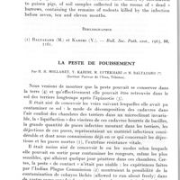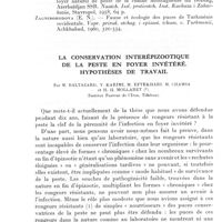 1303 - Page 1230 - Séance du 11 décembre 1963. Séance spéciale consacrée à la mémoire de Georges Blanc. Étude de l'épidémiologie de la peste dans le Kurdistan iranien. Données faunistiques et écologiques sur les puces des mérions d'un foyer naturel de peste au Kurdistan iranien, par J. M. Klein. Bibliographie. / La conservation interépizootique de la peste en foyer invétéré. Hypothèses de travail, par M. Baltazard, Y. Karimi, M. Eftekhari, M. Chamsa et H. H. Mollaret (Institut Pasteur de l'Iran, Téhéran)