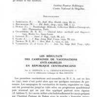 0057 - Page 52 - Séances des 12 janvier et 9 février 1966. Communications. Les résultats des campagnes de vaccinations anti-amariles en République Centrafricaine, par A. Chippaux et Cl. Chippaux-Hyppolite (avec la collaboration technique de Mme Decoux). / Utilisation de la méthode de Castellani pour la conservation des souches de dermatophytes et de levures, par Ph. Latourelle, J. Ranque et R. M. Nicoli