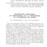 0059 - Page 54 - Séances des 12 janvier et 9 février 1966. Communications. Utilisation de la méthode de Castellani pour la conservation des souches de dermatophytes et de levures, par Ph. Latourelle, J. Ranque et R. M. Nicoli. / Confirmation sérologique et microscopique de la tréponémose du cynocéphale de Guinée, par A. Fribourg-Blanc, G. Niel et H. H. Mollaret