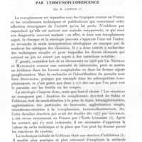 0082 - Page 77 - Séances des 12 janvier et 9 février 1966. Communications. Constatations personnelles pour le diagnostic sérologique de la toxoplasmose par l'immunofluorescence, par M. Capponi