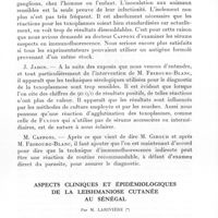 0104 - Page 98 - Séances des 12 janvier et 9 février 1966. Communications. Aspects cliniques et épidémiologiques de la leishmaniose cutanée au Sénégal, par M. Larivière. Bibliographie