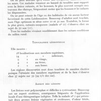 0094 - Page 87 - Séances des 12 janvier et 9 février 1966. Communications. Aspects cliniques et épidémiologiques de la leishmaniose cutanée au Sénégal, par M. Larivière. Clinique. / Topographie lésionnelle. / Aspect des lésions