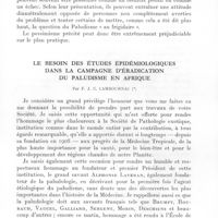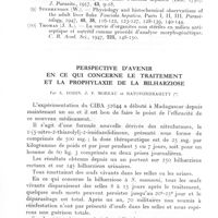 0117 - Page 109 - Séances des 12 janvier et 9 février 1966. Communications. Perspective d'avenir en ce qui concerne le traitement et la prophylaxie de la bilharziose, par A. Dodin, J. P. Moreau et Ratovondrahety. (Institut Pasteur de Madagascar Directeur : Docteur E. R. Brygoo.). / Enquête préliminaire sur la bilharziose dans la vallée du Niari (République du Congo). J. A. Davadie, Antoine Dégremont et M. A. Pothier