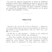 0247 - Page 234 - Séances des 9 mars et 13 avril 1966. Communications. Contrôle sur le terrain des propriétés molluscicides de l'oxyde de tributyl-étain (prophylaxie des bilharzioses), par R. Deschiens, H. Brottes et L. Mvogo. (Institut Pasteur du Cameroun et laboratoire d'épidémiologie de la Société de Pathologie Exotique.). / Étude du foyer d'ankylostomose de la chiffa (Algérie). III. - Résultats des mesures prophylactiques et du traitement des populations par l'Alcopar. Par E. Py et C. Ripert