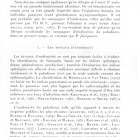 0733 - Page 699 - N° 4. Séances de travail des réunions d'information. Section IV. Expressions cliniques du paludisme. Les expressions cliniques du paludisme à Plasmodium falciparum chez l'enfant noir africain (d'après une expérience hospitalière dakaroise). Par M. Rey, A. Nouhouayi et I. Diop Mar. II. - Les formes graves du paludisme aigu. / III. - Les formes subaiguës et chroniques