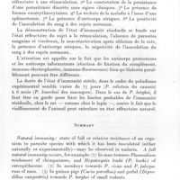 0614 - Page 580 - N° 4. Séances de travail des réunions d'information. Section III. Immunité dans le paludisme. Immunité naturelle, prémunition et immunité résiduelle dans le paludisme, par R. Deschiens et J. Bénex. Résumé