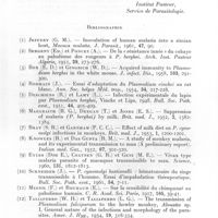 0617 - Page 583 - N° 4. Séances de travail des réunions d'information. Section III. Immunité dans le paludisme. Immunité naturelle, prémunition et immunité résiduelle dans le paludisme, par R. Deschiens et J. Bénex. Summary. (Institut Pasteur, Service de parasitologie.). / Bibliographie