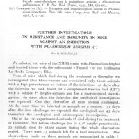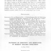 0619 - Page 585 - N° 4. Séances de travail des réunions d'information. Section III. Immunité dans le paludisme. Immunité naturelle, prémunition et immunité résiduelle dans le paludisme, par R. Deschiens et J. Bénex. Bibliographie. / Further investigations on resistance and immunity in mice against an infection with Plasmodium berghei, par R. Schindler