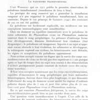 0641 - Page 607 - N° 4. Séances de travail des réunions d'information. Section III. Immunité dans le paludisme. Le rôle de la rate dans l'immunité antipaludéenne, par Georges Fabiani. I. - Étude expérimentale des paludismes animaux
