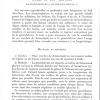 0208 - Page 199 - Séances des 9 mars et 13 avril 1966. Communications. Essais de fongicides dérivés du diméthyl-dithiocarbamate de zinc in vitro et in vivo dans la chromoblastomycose humaine, par B. Le Quellec, A. Dodin et Michèle Moreau. / Enquête sur l'incidence en Guyane Française de l'histoplasmose en milieu militaire au moyen de tests cutanés à l'histoplasmine, par Charles Silverie et Marcel Duchassin