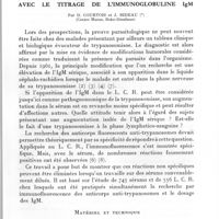 0857 - Page 817 - Séance des 6 juillet et 12 octobre 1966. Communications. L'immunofluorescence appliquée au diagnostic de la trypanosomiase humaine africaine. Valeur comparative avec le titrage de l'immunoglobuline IgM, par D. Courtois et J. Bideau (Centre Muraz, Bobo-Dioulasso). / Note préliminaire sur l'étude immuno-électrophorétique du sérum de bovins trypanosomés, par J. Bideau, R. Gidel et J. Moity