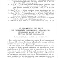 0944 - Page 898 - Séance des 6 juillet et 12 octobre 1966. Communications. Au sujet des inclusions de matériel parasitologique et entomologique en résine polymérisée, par Y. Guy et R. Dupuy. (Laboratoire central de parasitologie et d'entomologie de l'Institut national d'hygiène du Maroc, Rabat.). / « Sensibilité de base » d'Aedes (O.) caspius (Pallas) et d'Aedes (O.) detritus (Halliday) à quelques insecticides organo-phosphorés, par G. Gras, J. A. Rioux, H. Croset, S. Tour et J. Broussal