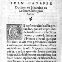 - [Maistre Jean Canappe Docteur en Medecine au Lecteur Chirurgien Salut, Lyon, 1er juillet 1541, p. 3-8]